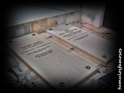 Laje de mármore (lápide) retangular com o seu nome e datas gravados